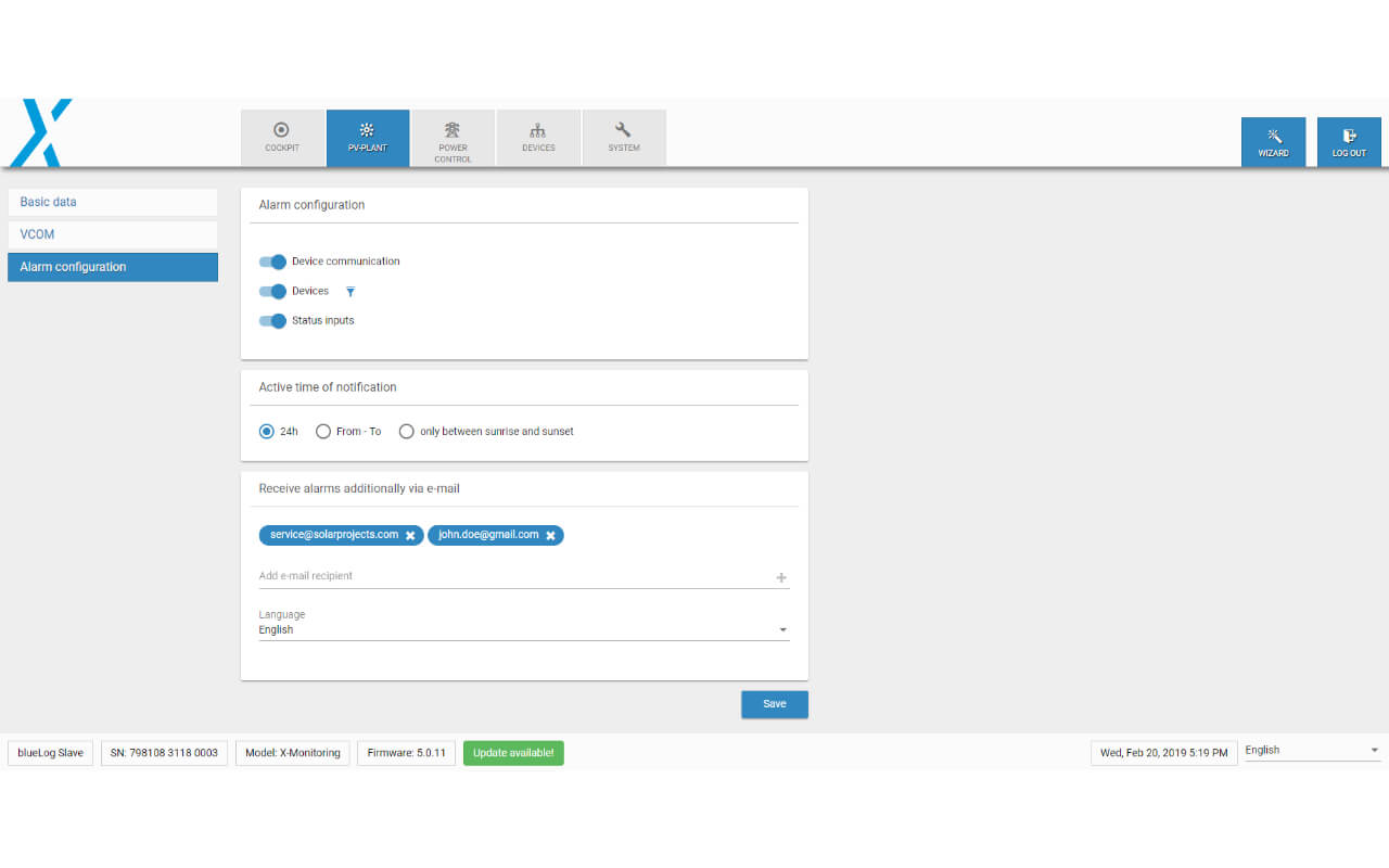 Nous vous proposons les versions de l’enregistreur de données blue’Log XM (X-Monitoring) et blue’Log XC (X-Control) et des solutions individuelles pour vos projets photovoltaïques.