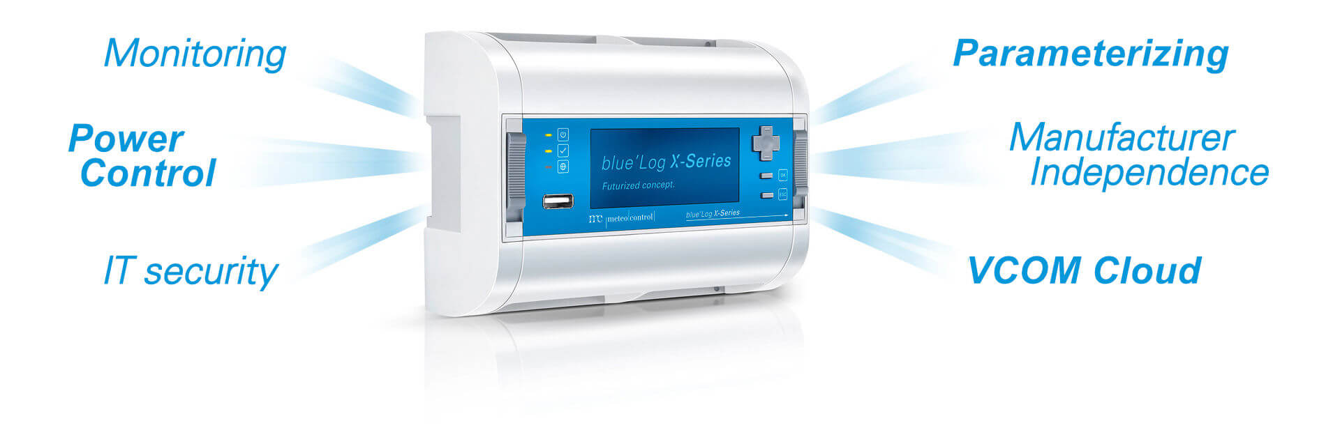 Le régulateur blue’Log XC est conçu pour une intégration optimale de centrales photovoltaïques au réseau et assure la conformité aux conditions de raccordement. Grâce à des fonctions avancées de gestion de la puissance active et réactive, l’intégration au réseau est garantie et permet au système photovoltaïque de contribuer à la stabilité du réseau. La flexibilité de la régulation sur la base du blue'Log XC permet une utilisation aussi bien en basse qu’en haute tension.
