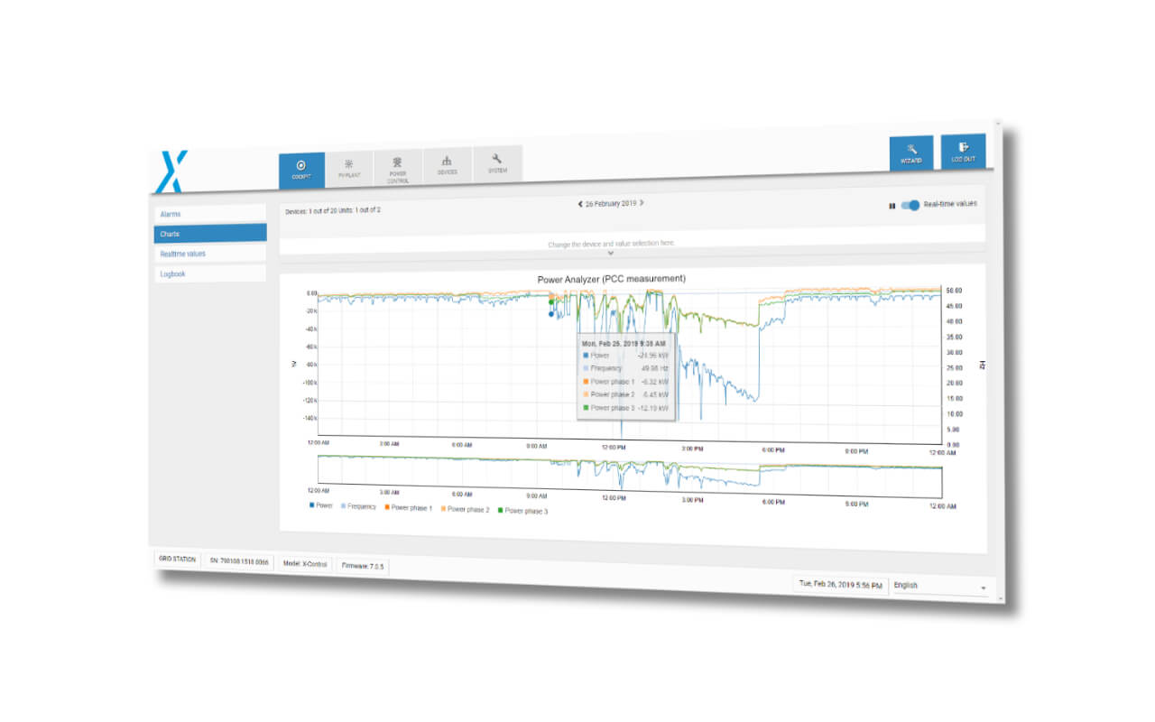 Grâce à sa gestion complète de la puissance réactive, le blue'Log XC aide à soutenir activement la tension et améliore ainsi considérablement la stabilité du réseau.