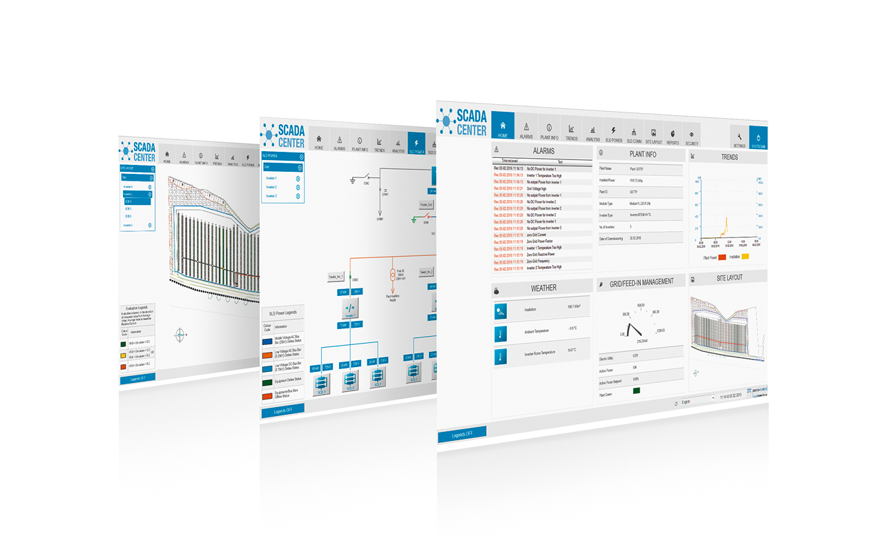 Le système SCADA permet une exploitation en local, sur site de votre installation PV : vous pouvez visualiser toutes les valeurs mesurées localement et en temps réel. Dans le cas de défaut, réagissez rapidement et efficacement. Dans cet objectif, des analyses de haute qualité, graphiques des flux et gestion intelligente des alarmes sont fournis. Le système dispose d'interfaces aux enregistreurs de données, aux automates programmables et actionneurs. Dans le center SCADA, vous pouvez activer les actionneurs et visualisez immédiatement son statut.