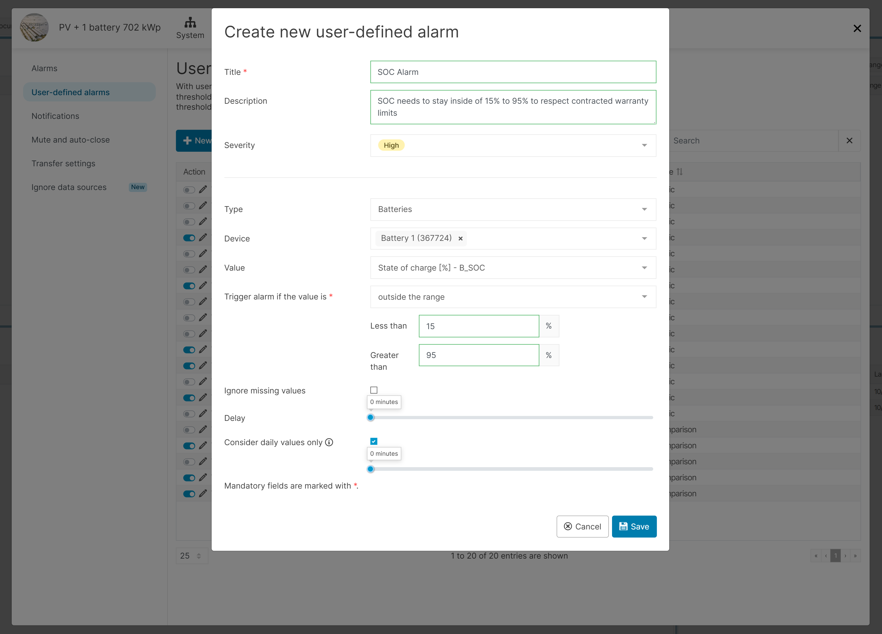 We provide the assurance that you always know if your BESS are fully operable or if any issues are arising. This allows errors to be quickly localized, as you receive immediate alarms for any faults.
