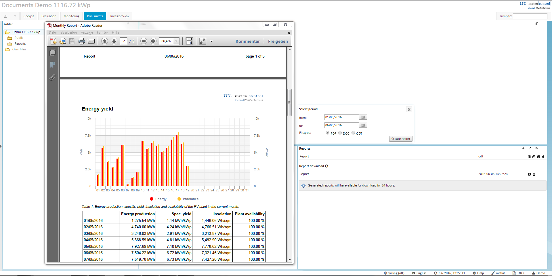 The most important key performance indicators and error protocols are provided to you automatically and clearly in the investor overview and the extensive, freely configurable reports.