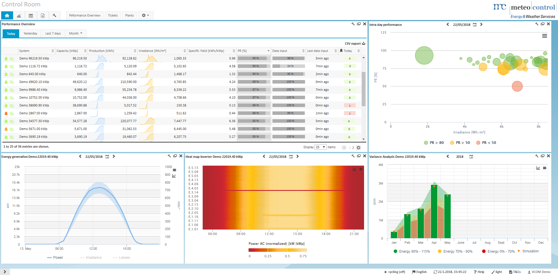 - Ready-made graphics – standardized inverter energy, performance ratio, heat map and many others