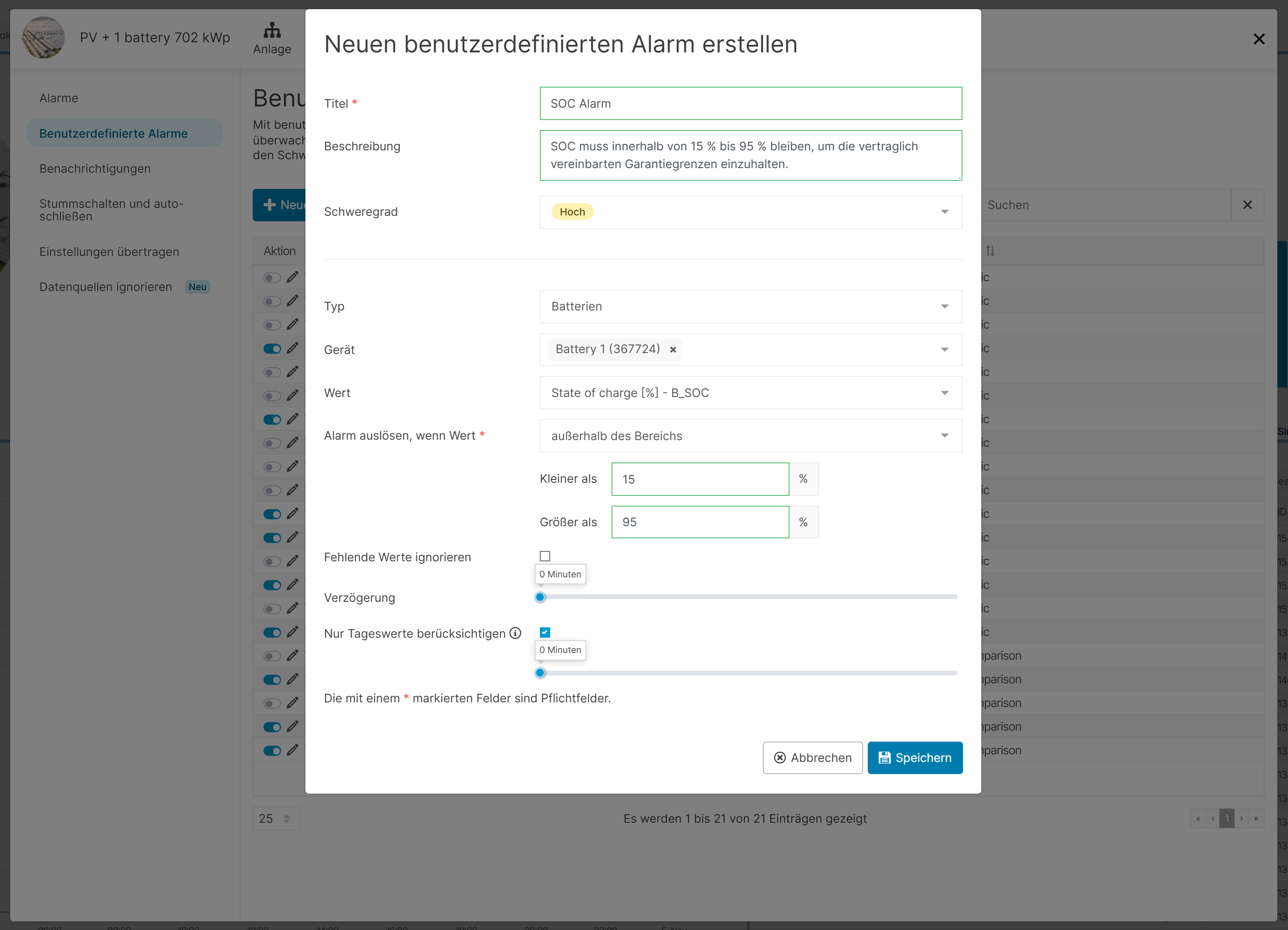 Wir sorgen dafür, dass Sie immer wissen, ob Ihre BESS voll funktionsfähig sind oder ob Probleme auftreten. So können Fehler schnell lokalisiert werden, da Sie bei Störungen sofort Alarmmeldungen erhalten.