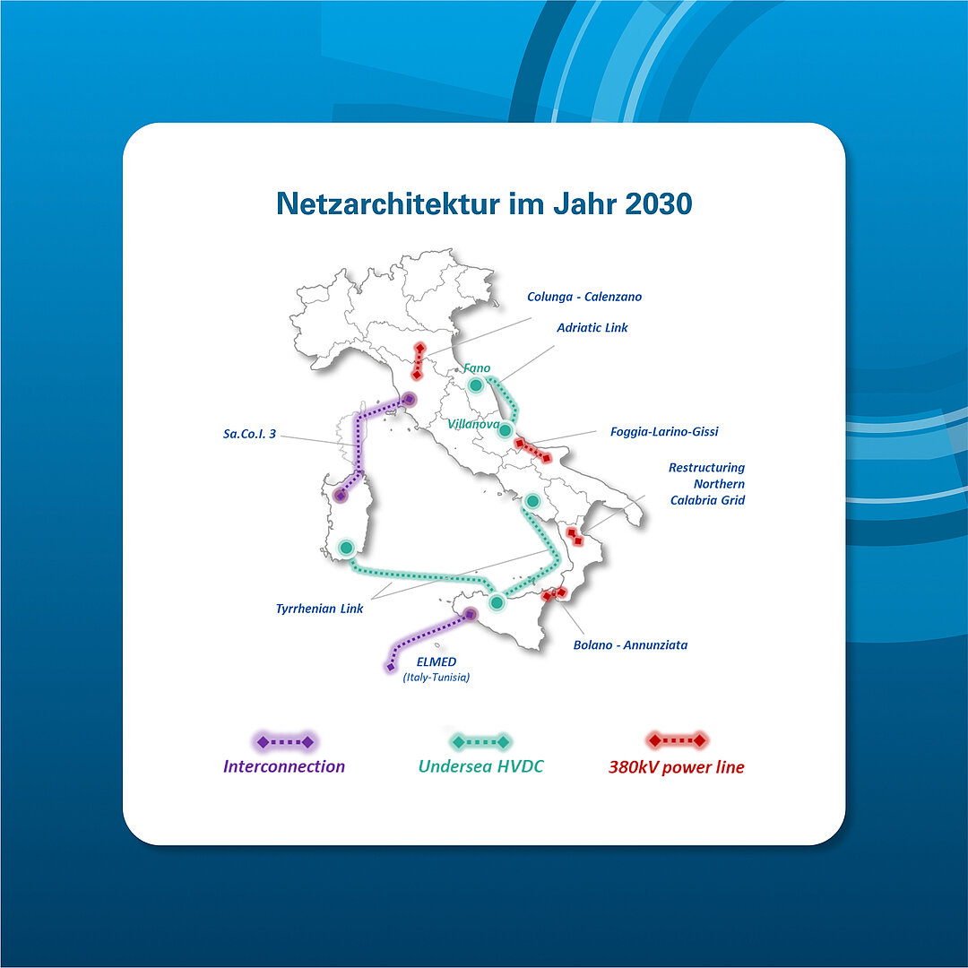 Neben der Digitalisierung wird auch der Netzausbau vorangetrieben. Terna hat in diesem Jahr ein auf zehn Jahre angelegtes Investitionsprogramm für das Netz in Höhe von 23 Milliarden Euro vorgestellt. Auch wenn die Zeitpläne für solche Großprojekte oft optimistisch sind, werden die geplanten Verstärkungen – insbesondere neue Übertragungskapazitäten, die den Süden, welcher reich an Erneuerbaren ist, mit dem industriellen Norden verbinden – entscheidend sein, um große Mengen an Solar- und Windenergie nutzbar zu machen.