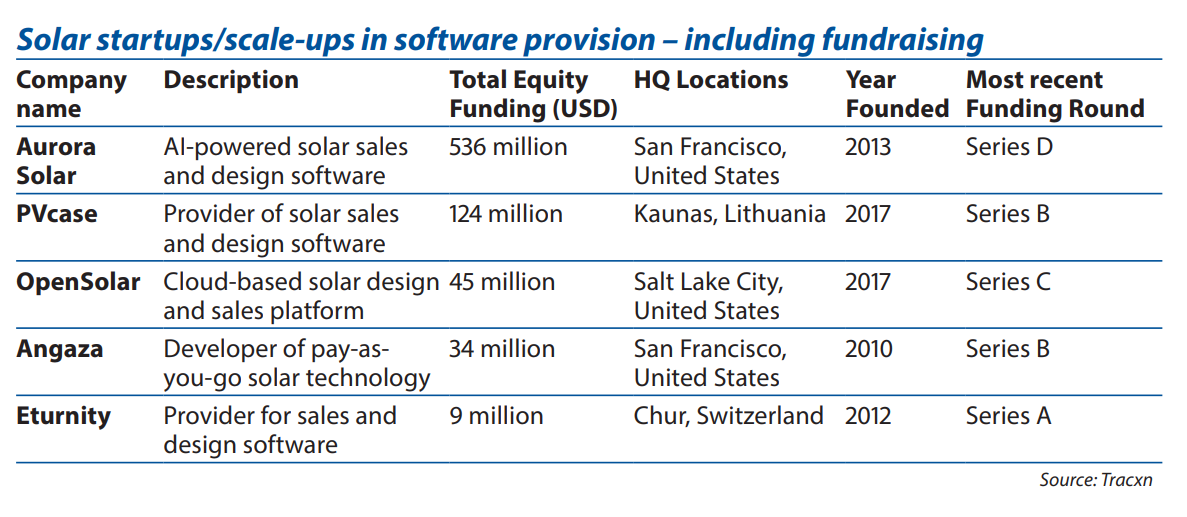 Die Solarbranche erkennt zunehmend, dass digitale Tools erhebliche Effizienzsteigerungen in den Bereichen Design, Betrieb und Finanzen ermöglichen. Software-Startups und Scale-ups bieten Projektentwicklern, EPCs und Installateuren Tools für die Projektplanung, Erzeugungsmodellierung und den Vertrieb an, von denen viele bereits große Erfolge bei der Gewinnung von Investoren vorweisen können.